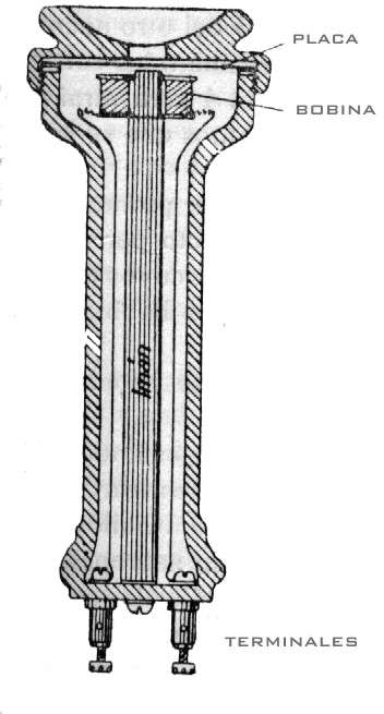 Hablando delante de la lamina numero 1 se pondrá en vibración, y al acercarse o alejarse del imán se produce en la bobina 2 una serie de corrientes inducidas, que se transmiten por la línea a la bobina 3 del otro aparato. Al llegar a ésta , y no olvidando que el núcleo es un imán, las corrientes reforzaran o debilitaran a dicho imán, y la placa 4 será atraída o rechazada, reproduciendo así fielmente los movimientos que se hicieron por defecto de la voz ante la placa 1.