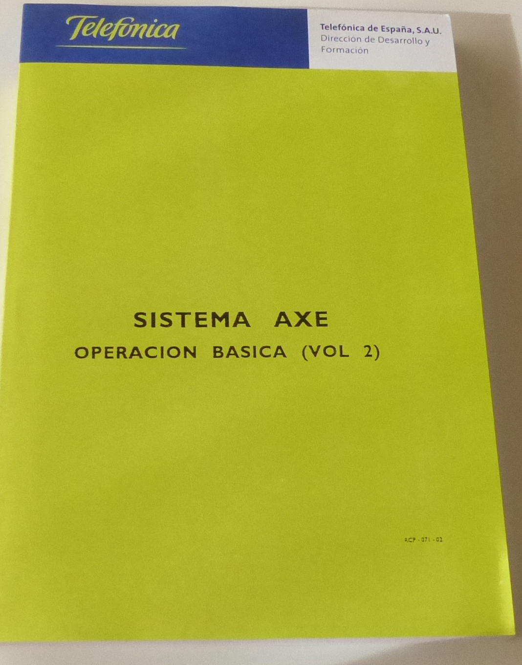 | P1110432 | Sistema AXE operación basica Vol II | ||