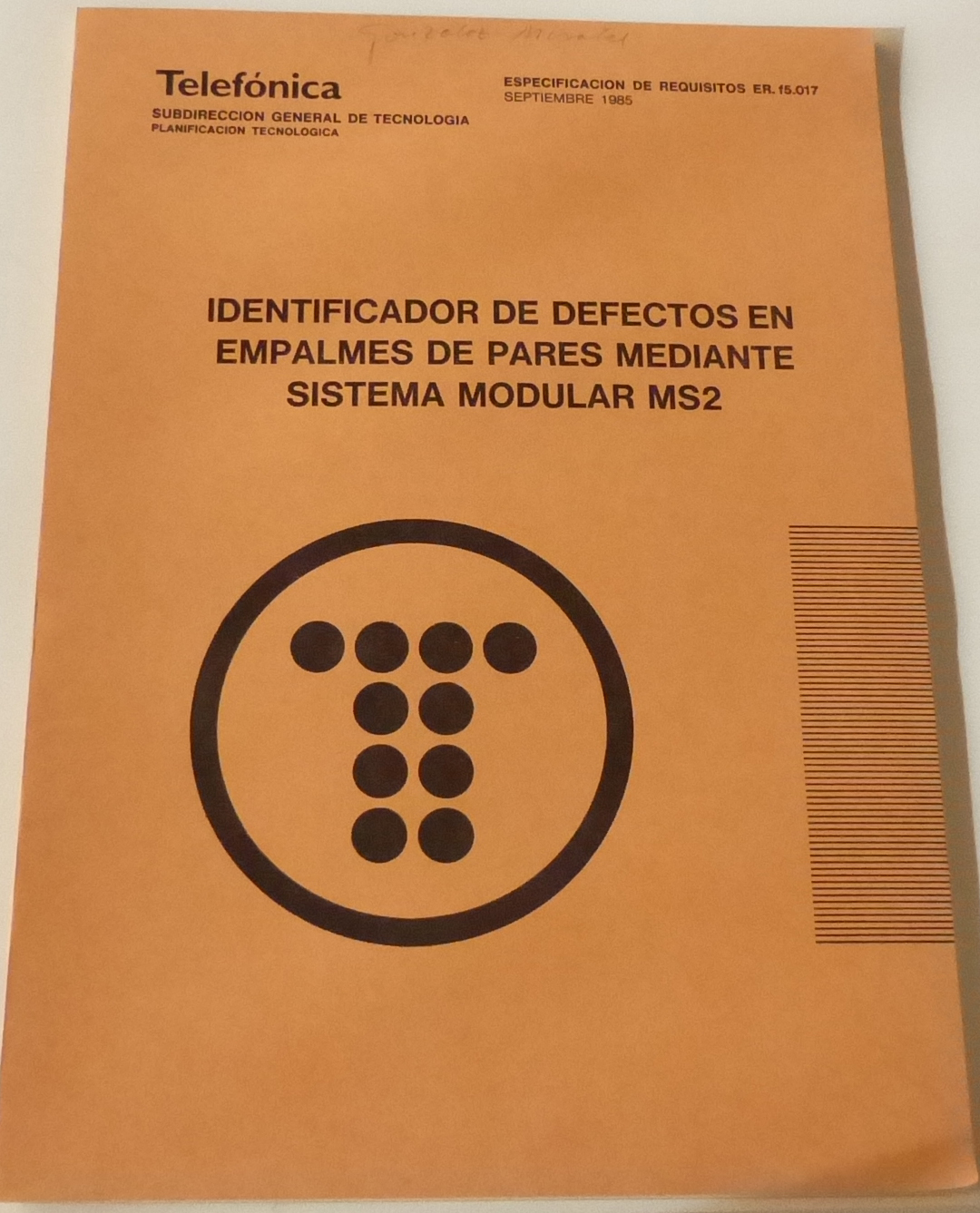 | P1110579 | identificador de defectos en empalmes MS2 | 1985 | |