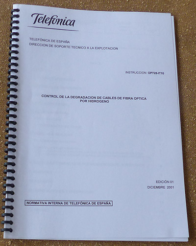 | P1120375 | control de la degradacion cables de f.o. por hidrogeno | 2001 | |